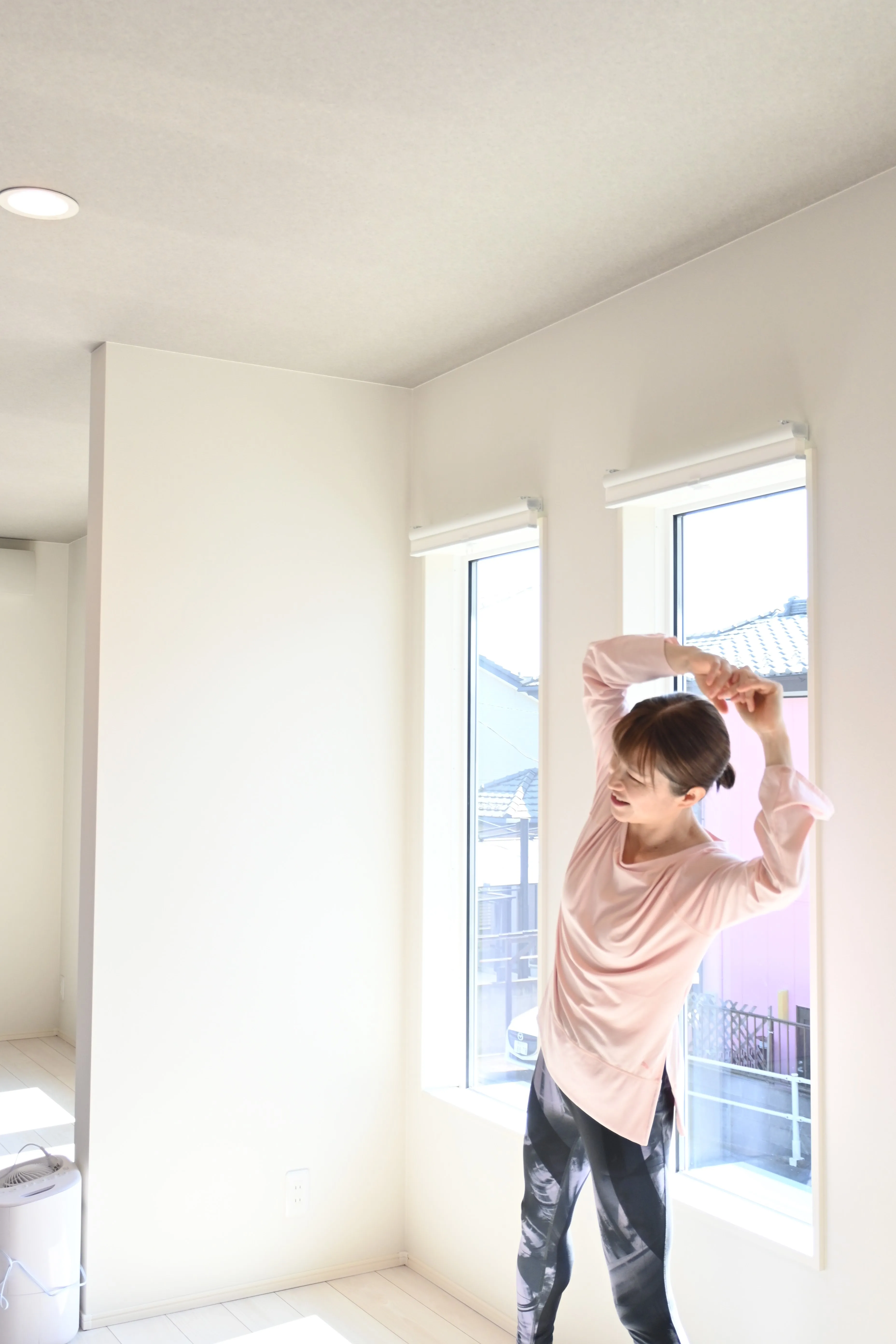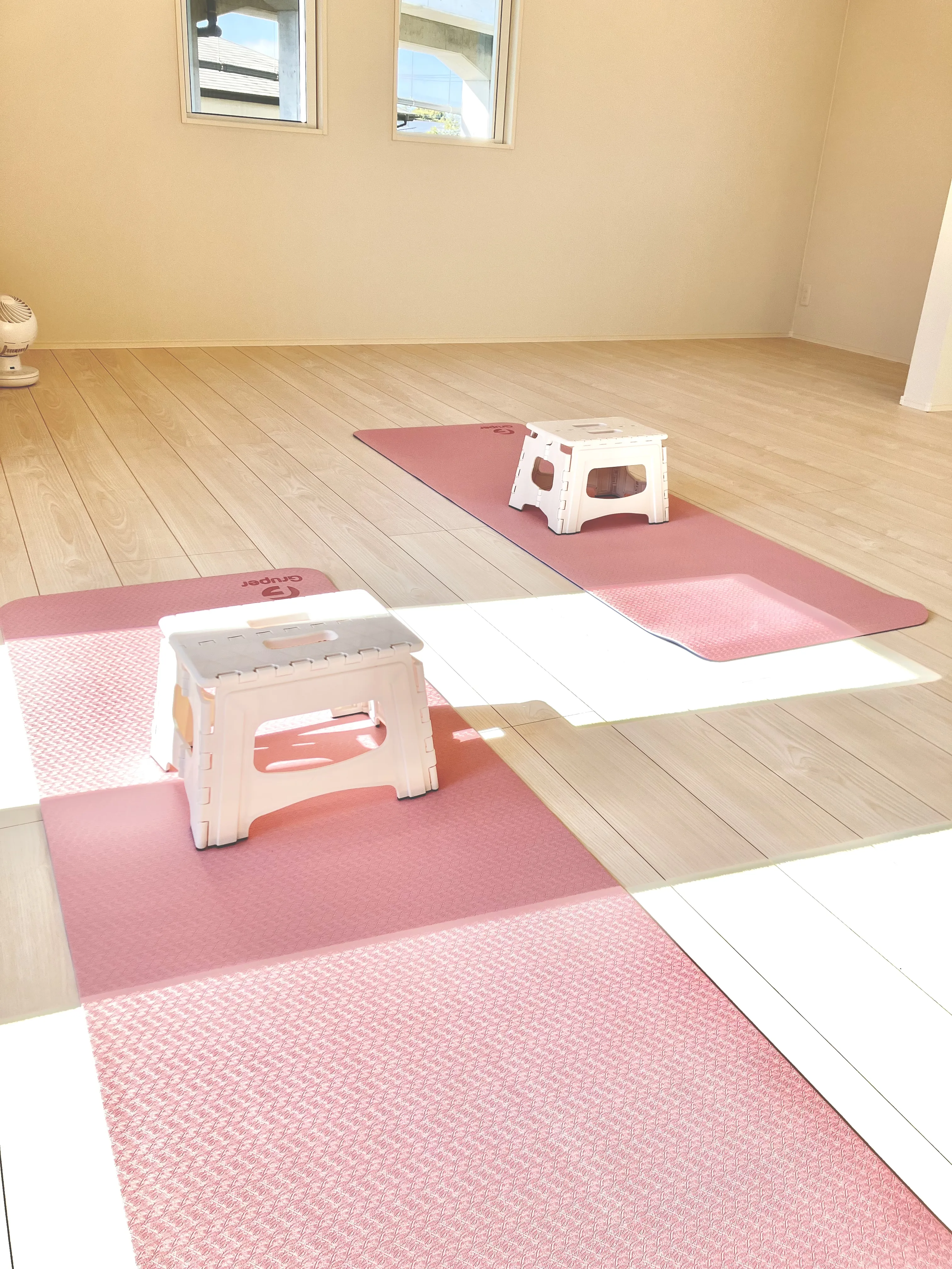 クローゼットから台座とヨガマットを取って、好きな位置へセッティング