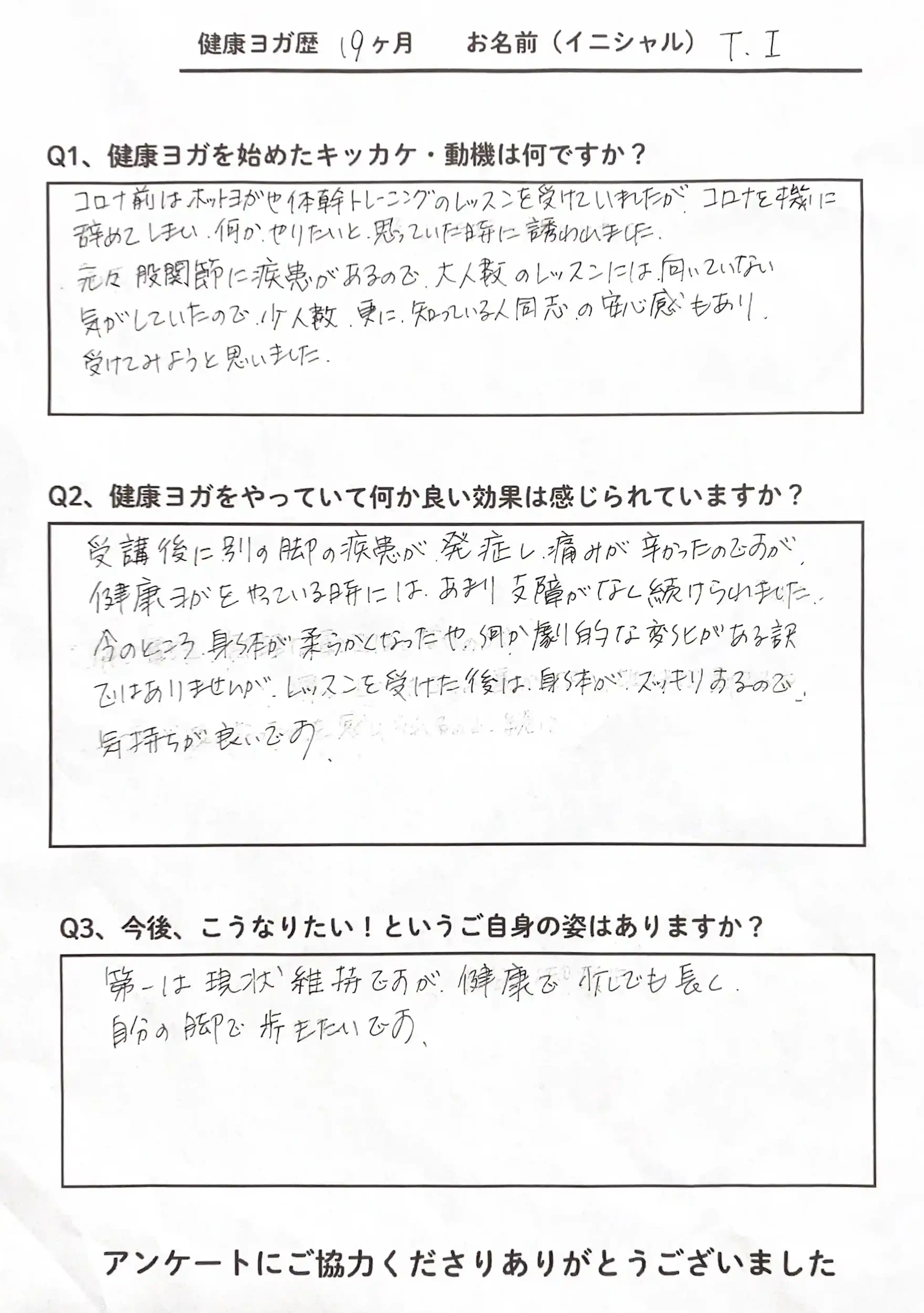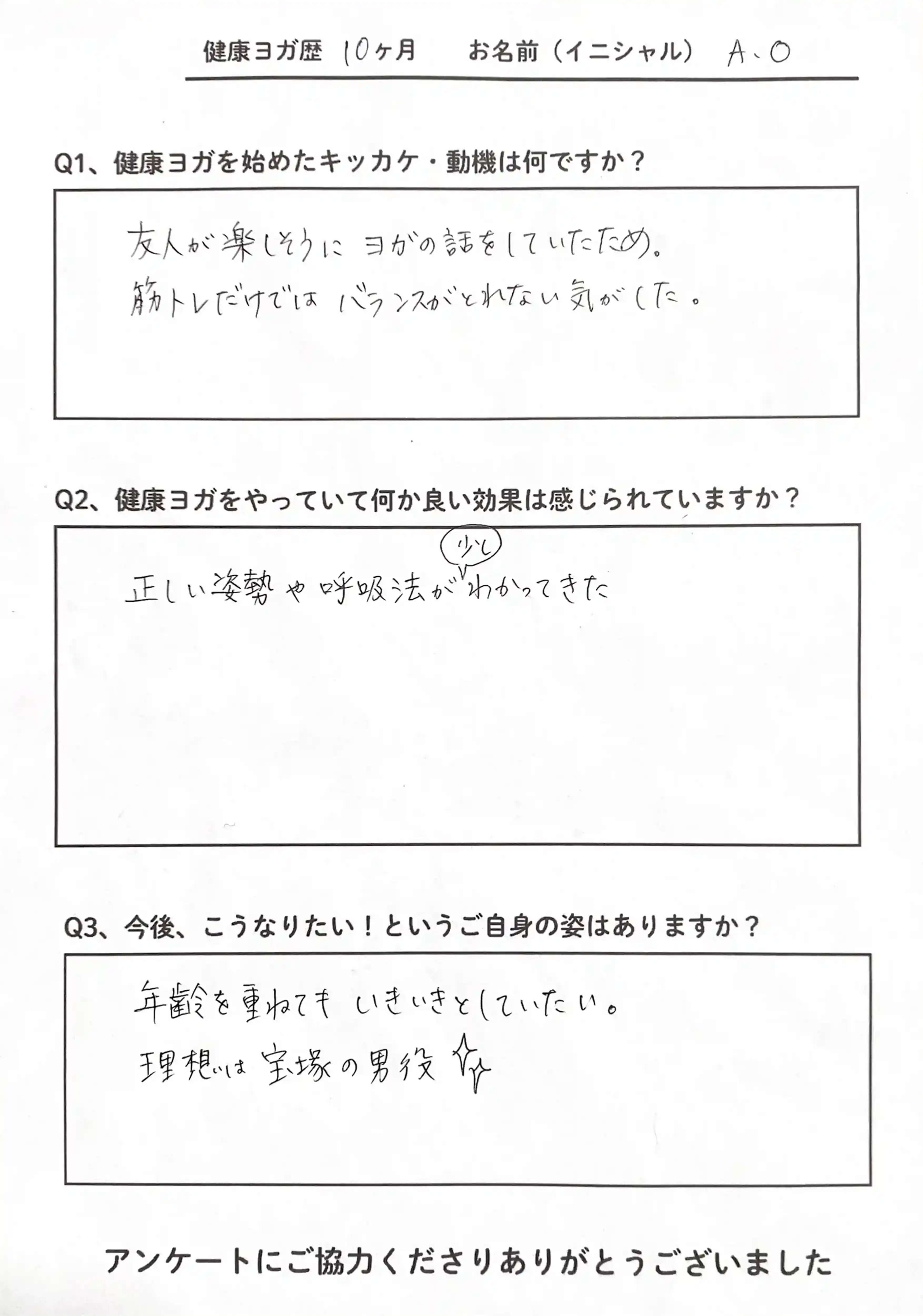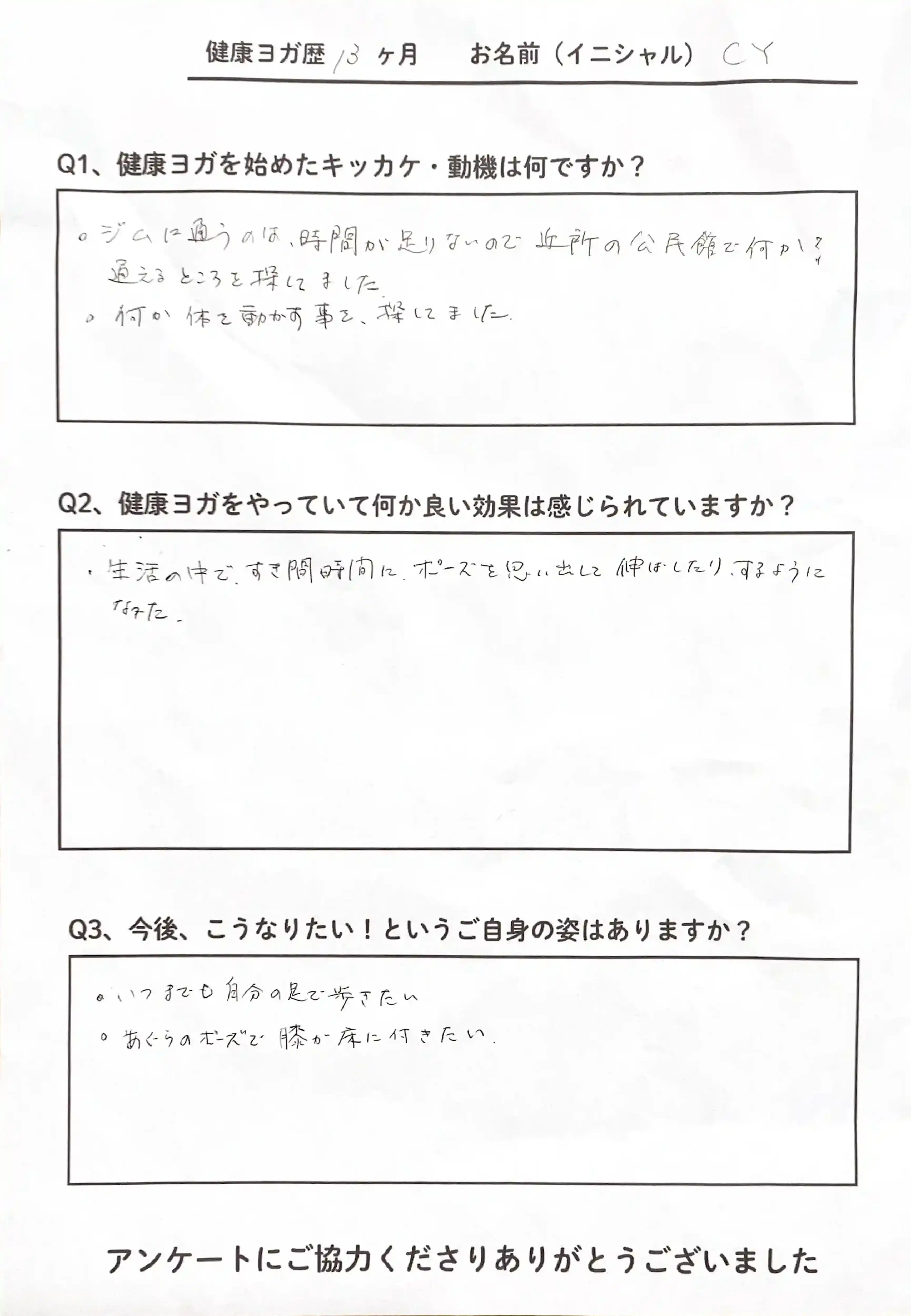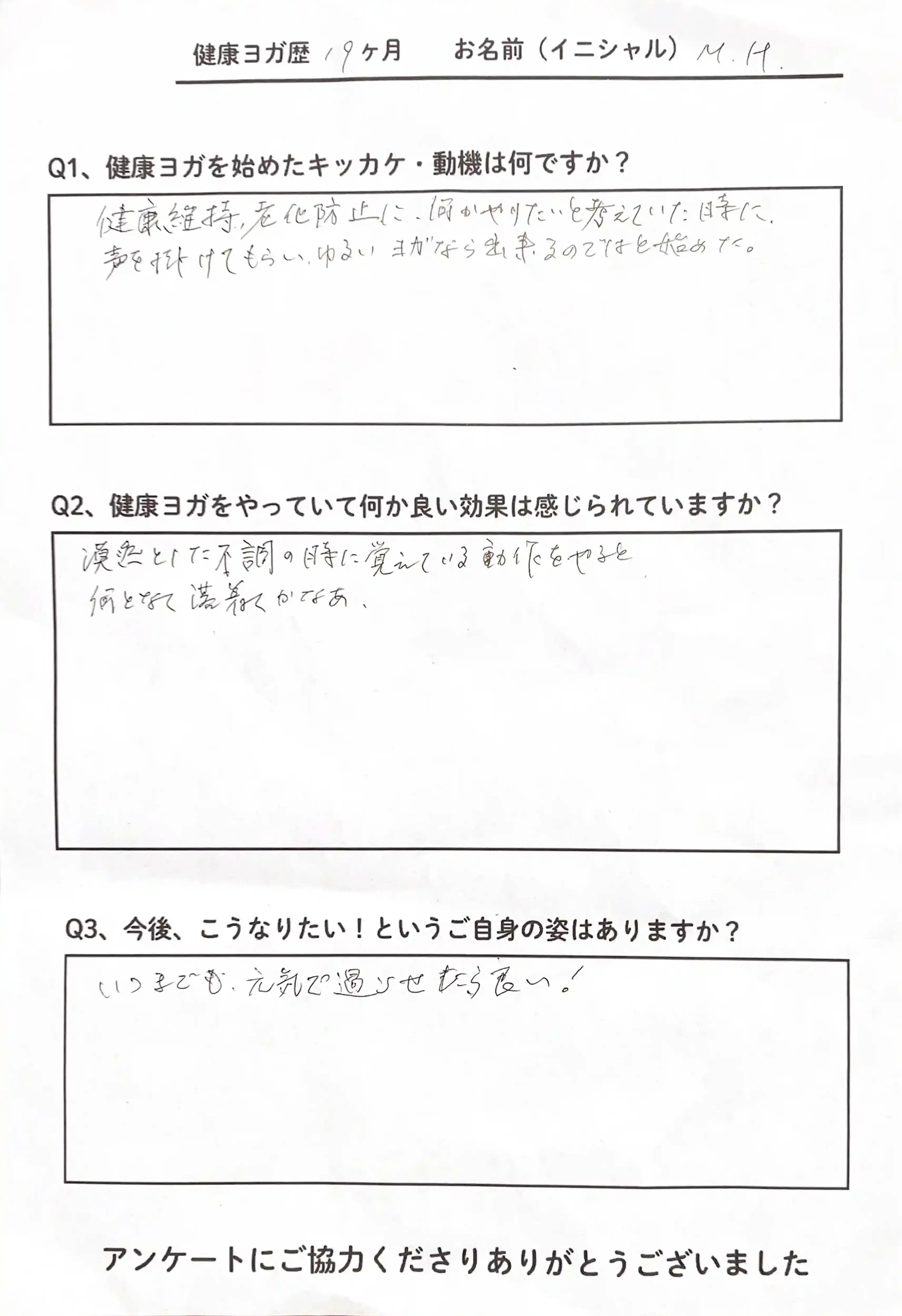 健康ヨガに関わってくださった方が、一生涯、楽しく・美しく・健やかに、過ごして下さったら嬉しく思っています。